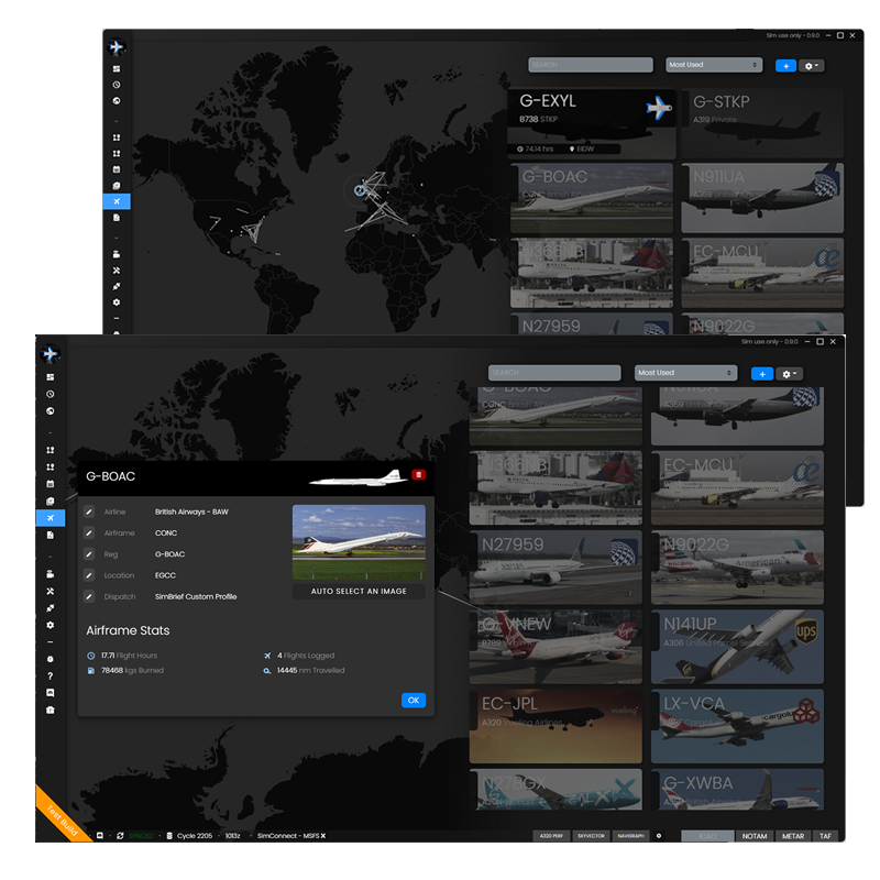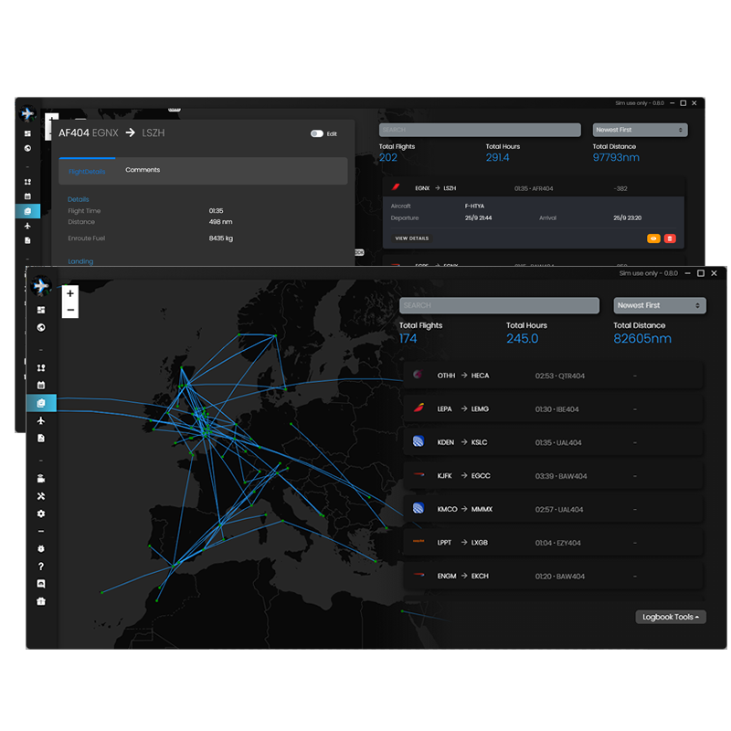 New visual fleet management with better ICAO support, historical airline data and a per-aircraft tracking map for all its flights and flight hours